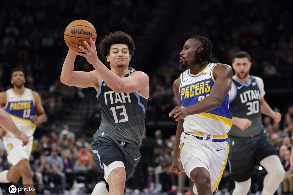 爵士队首发:劳里-马尔卡宁、斯维亚托斯拉夫-米哈伊柳克、埃斯-贝利、尤素福-努尔基奇、基扬特-乔治