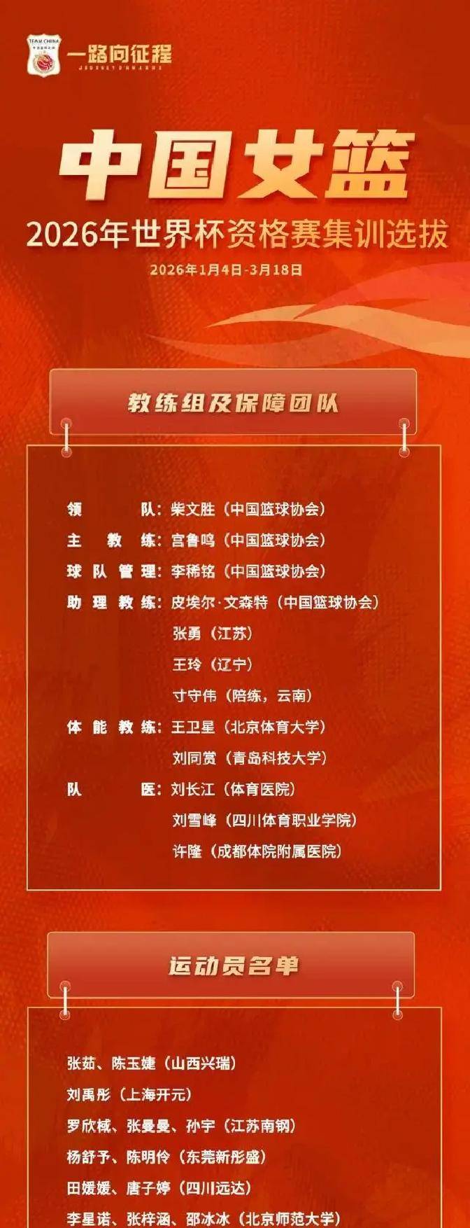 这份选拔名单里,有韩旭、李月汝这些核心球员,也有好多年轻球员。能明显看出来,教练组在加快新老交替呢。对于关心中国女篮未来发展的球迷来说,这份名单就是个信号,中国女篮要开启新的篇章了。