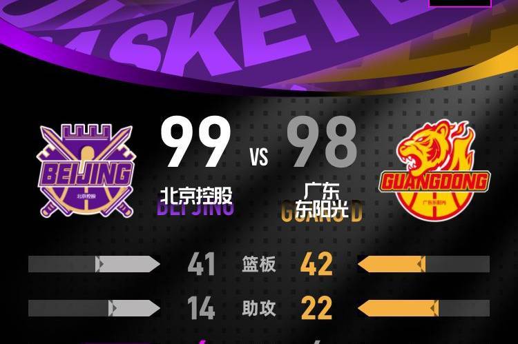 最后一节,比赛状况依然胶着,广东东阳光和北京控股互不相让,实力势均力敌。北京控股的廖三宁在这一节表现出色,单节独得12分,帮助球队在关键时刻紧咬比分。最后时刻,廖三宁抛投绝杀,北京控股最终以99-98险胜广东东阳光,赢得了这场激烈的对决。
