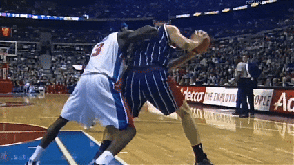 即使是当年的肌肉猛男:本华莱士,在姚明顶级下肢力量面前,不堪一击。