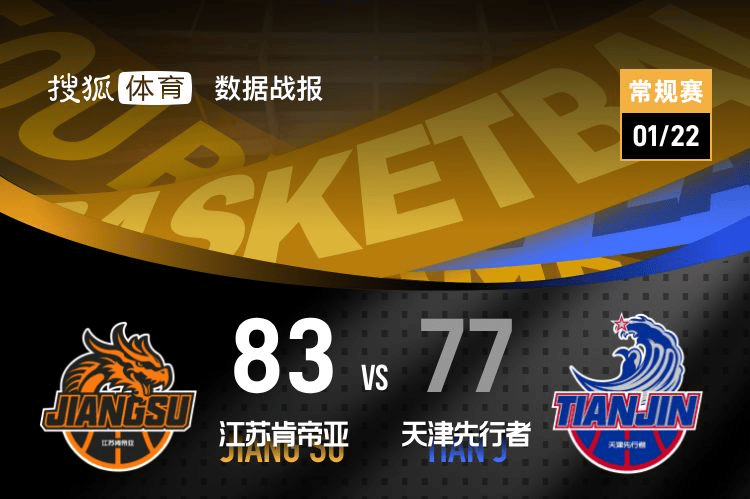 【搜狐体育战报】北京时间1月22日CBA常规赛第18轮,主场作战的江苏肯帝亚以83-77击败天津先行者。哈里·贾尔斯24分11篮板0助攻,大卫·詹姆斯16分10篮板2助攻。