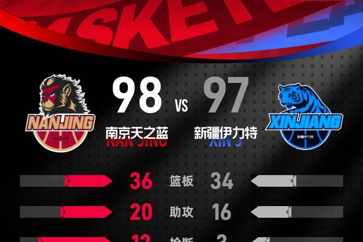 第四节,南京天之蓝开局强势,通过一波迅猛的攻势将分差扩大至82-75。随后新疆伊力特奋起直追,不仅将比分抹平,还一度领先南京天之蓝9分。然而,在比赛的后段,南京天之蓝逐渐缩小分差,扭转了局势。这一节中,南京天之蓝的杰伦·汉兹表现亮眼,独得15分,其中包含1记三分。最终,南京天之蓝以98-97赢得比赛。